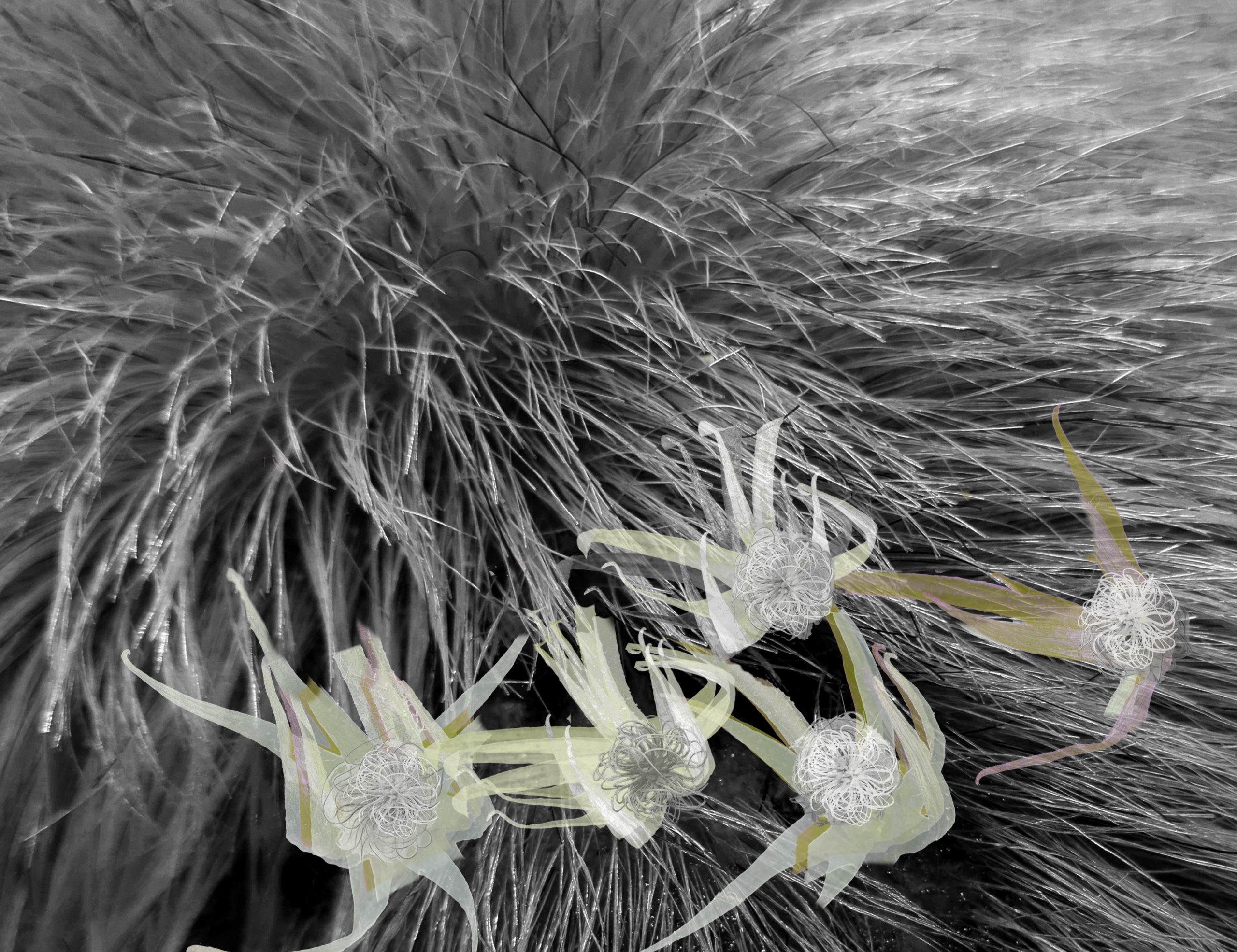 Un cheveu vivait dans l’inconscient. Il jouissait vivement du plaisir accordé à une chevelure fournie et bien entretenue. Il était choyé et complimenté, fréquemment et de belle façon. Mais voilà qu’il rêve d’atteindre le conscient, son alter ego. Il la connaît bien, cette âme sœur, sa complice, sa voisine. Il anticipe la réalité, l’éveil à sa propre existence et au monde qui l’entoure. La chevelure qu’il habite réalise, d’une mèche à l’autre, son désir de se parfaire en une seule journée. La réalité le frappe de plein fouet. Le moteur en sera une plaie, source de sa renaissance. Une guérison solidaire entraîne dans son sillon les repousses, les agrafes, les bouchons et les points, les fleurs, les pétales séchées avec leur odeur agréable, bienfaisante. Tous et toutes ensemble apportent un baume bienfaisant des plus apaisant, curatif.